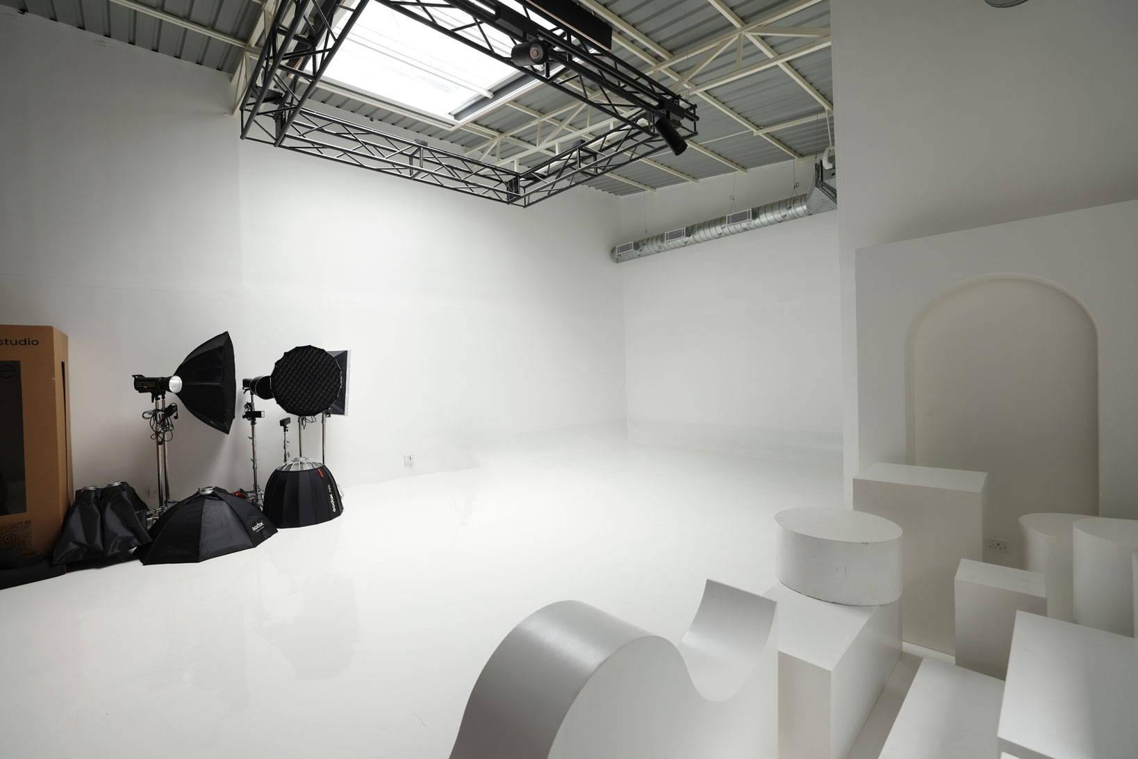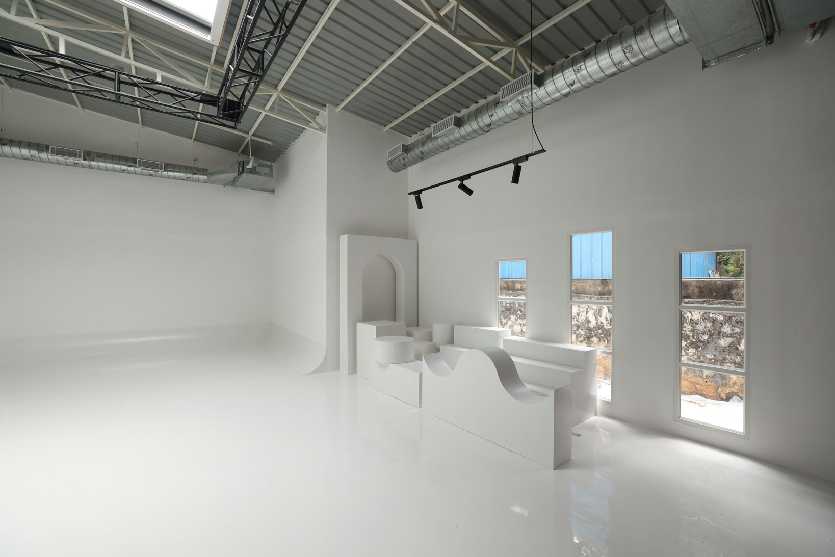 🔸 White Set Props – arch, wave, cylinders, cuboids, and steps